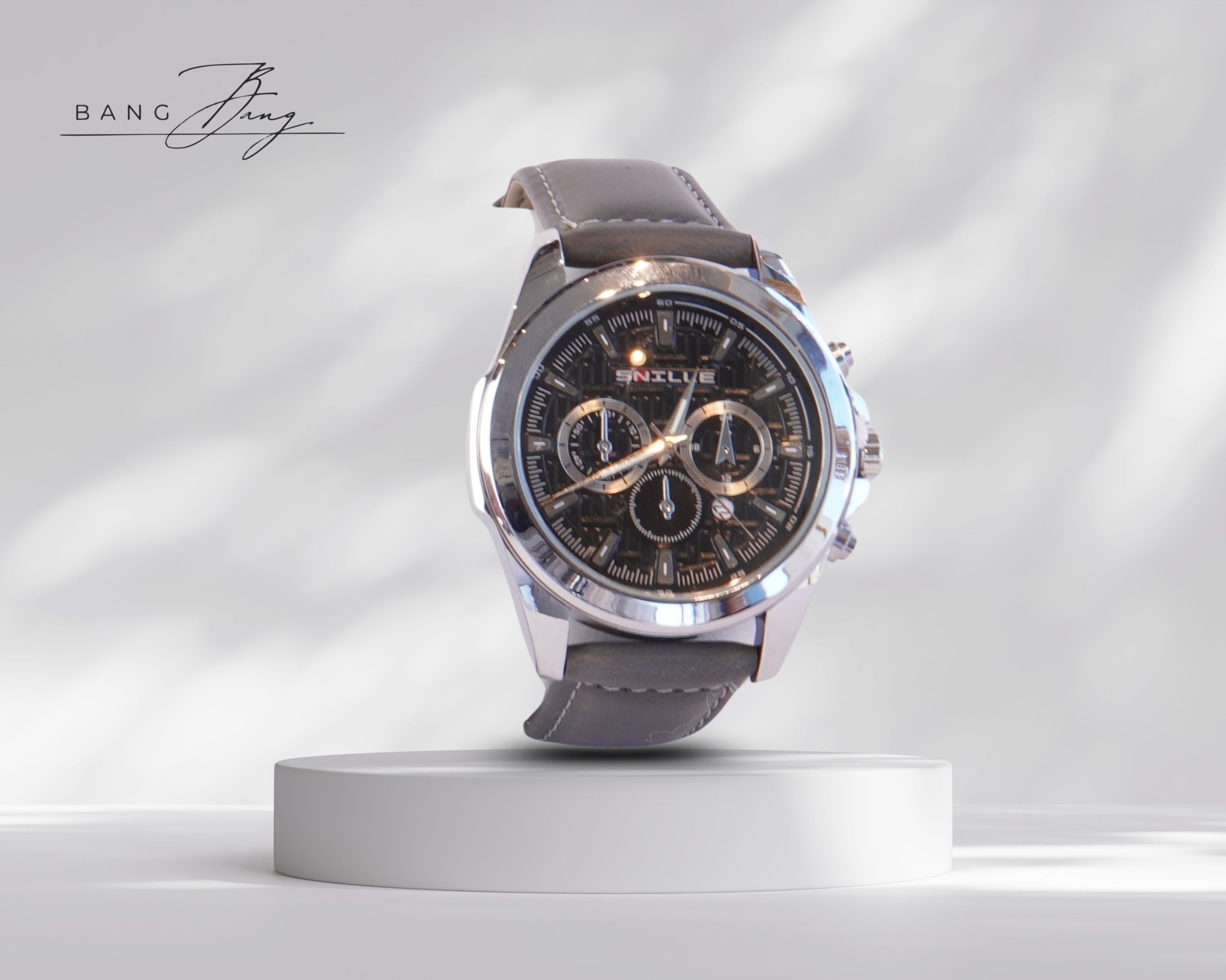 Cette montre chronographe au cadran noir sophistiqué et au bracelet en cuir gris allie robustesse et élégance. Son design moderne, agrémenté de multiples compteurs fonctionnels, en fait un accessoire idéal pour les hommes à la recherche d’un style raffiné et dynamique. Un choix parfait pour affirmer sa personnalité, au bureau comme en sortie.
