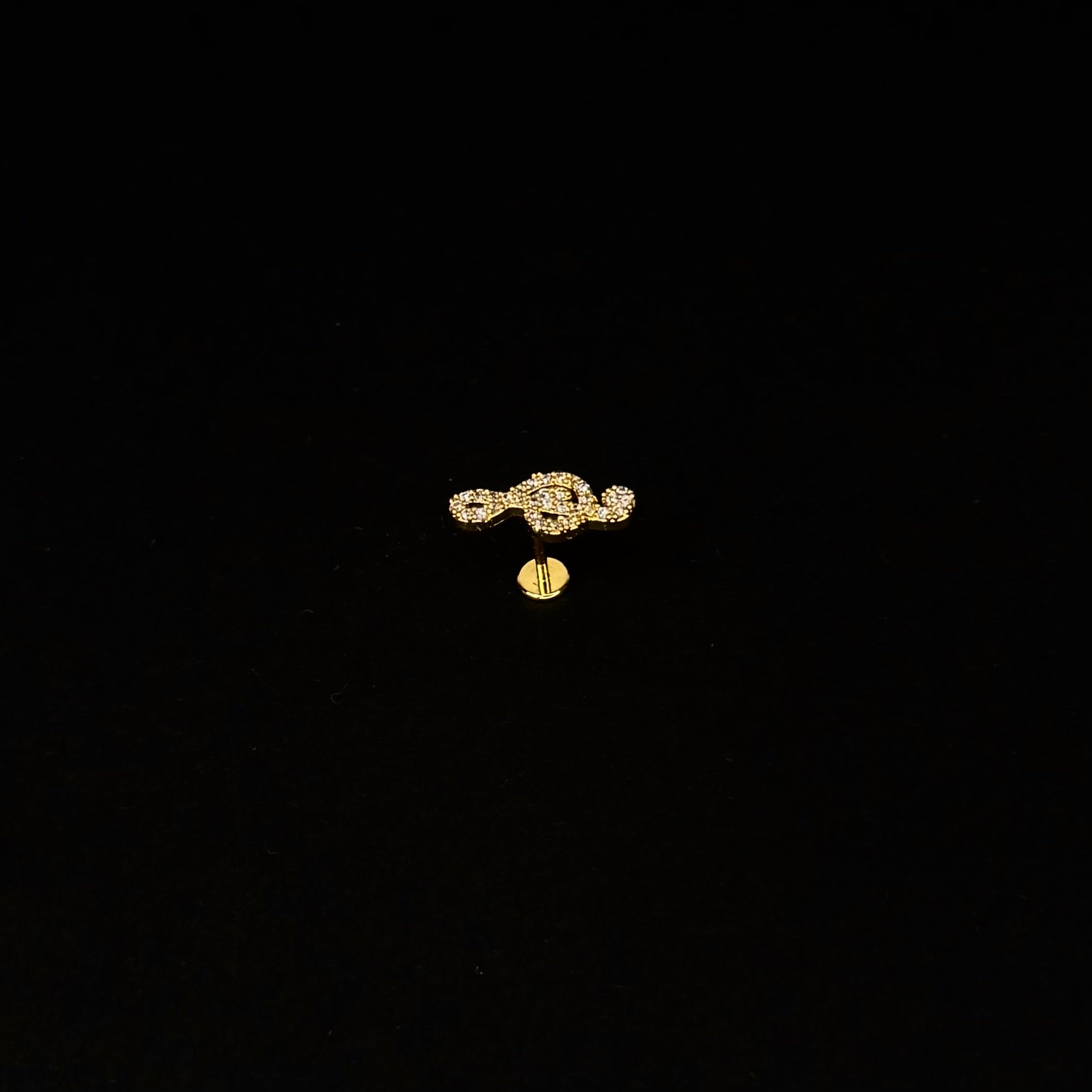 Un piercing raffiné en acier doré, sublimé par des strass étincelants qui captent la lumière à chaque mouvement. Idéal pour apporter une touche glamour et élégante à votre style, de jour comme de nuit.