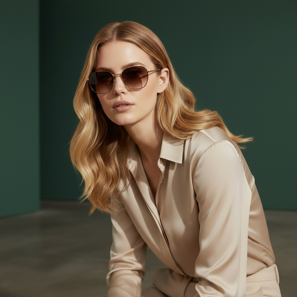 Lunettes femme au design moderne et élégant, avec des verres bruns doux et une monture dorée ultra-fine. Le modèle octogonal apporte une touche sophistiquée et tendance, tout en restant léger et confortable. Un style chic, minimal et idéal pour un look féminin raffiné au quotidien. Protection UV incluse et finition premium.