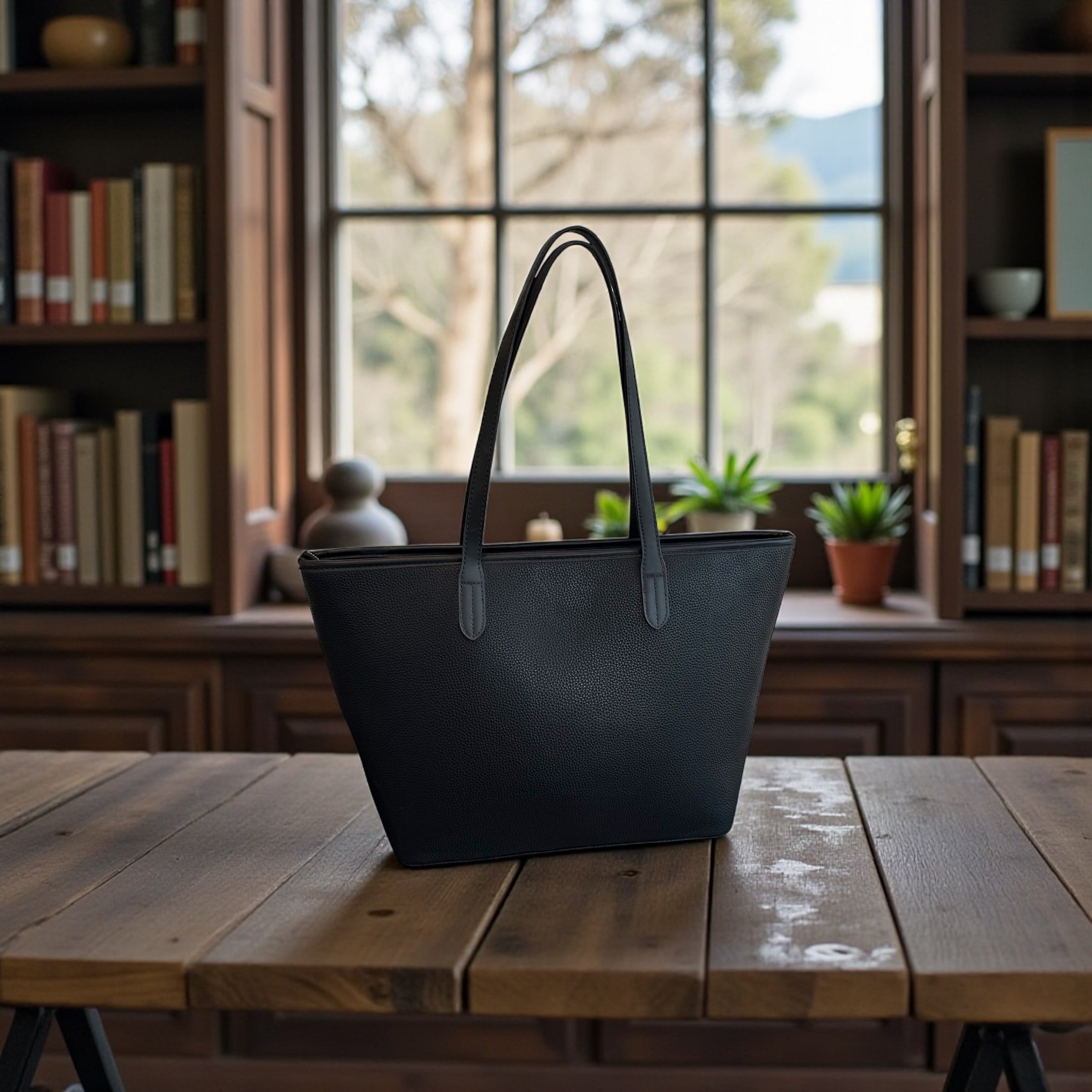Ce cabas noir au design épuré offre un équilibre idéal entre élégance et praticité.