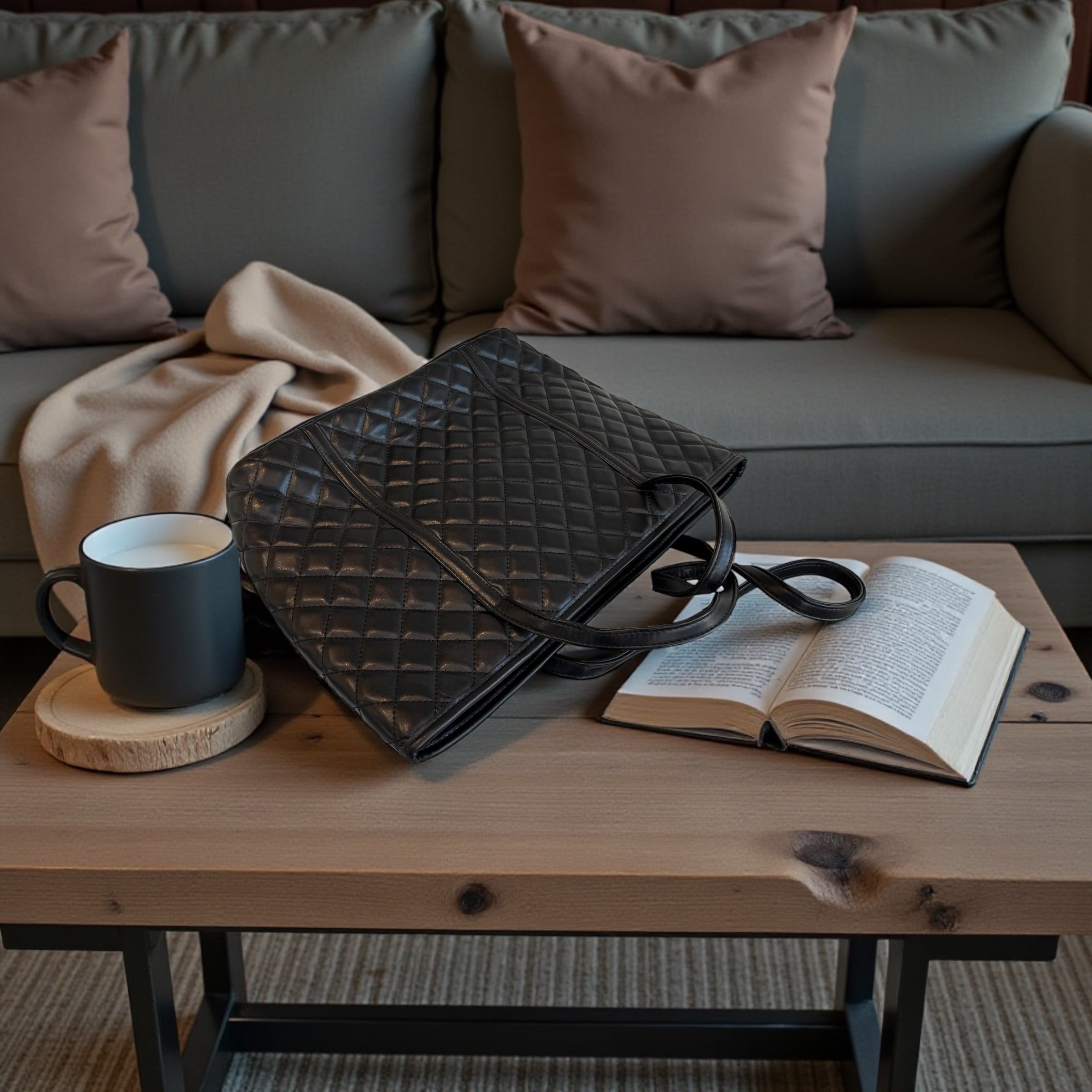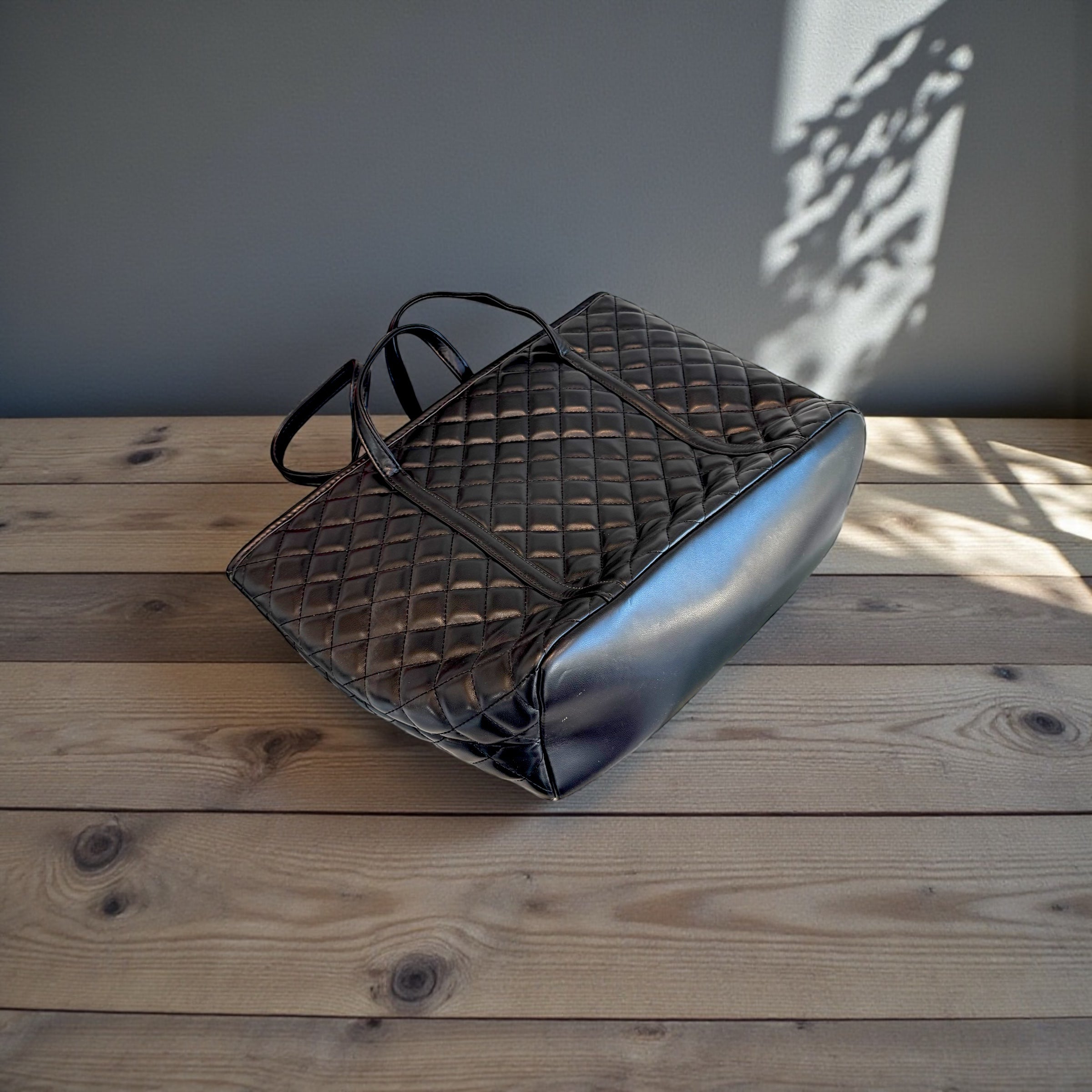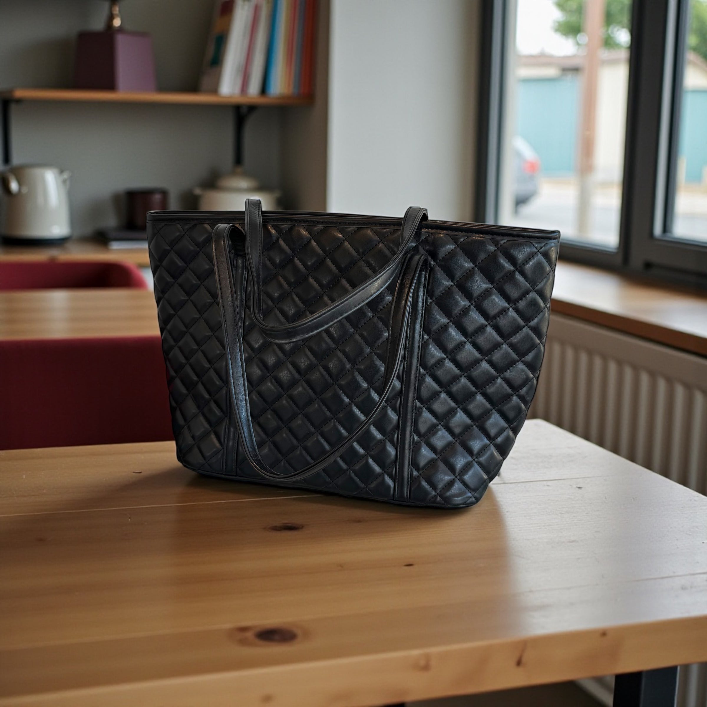 Ce cabas noir matelassé offre un style chic et moderne tout en restant parfaitement fonctionnel.