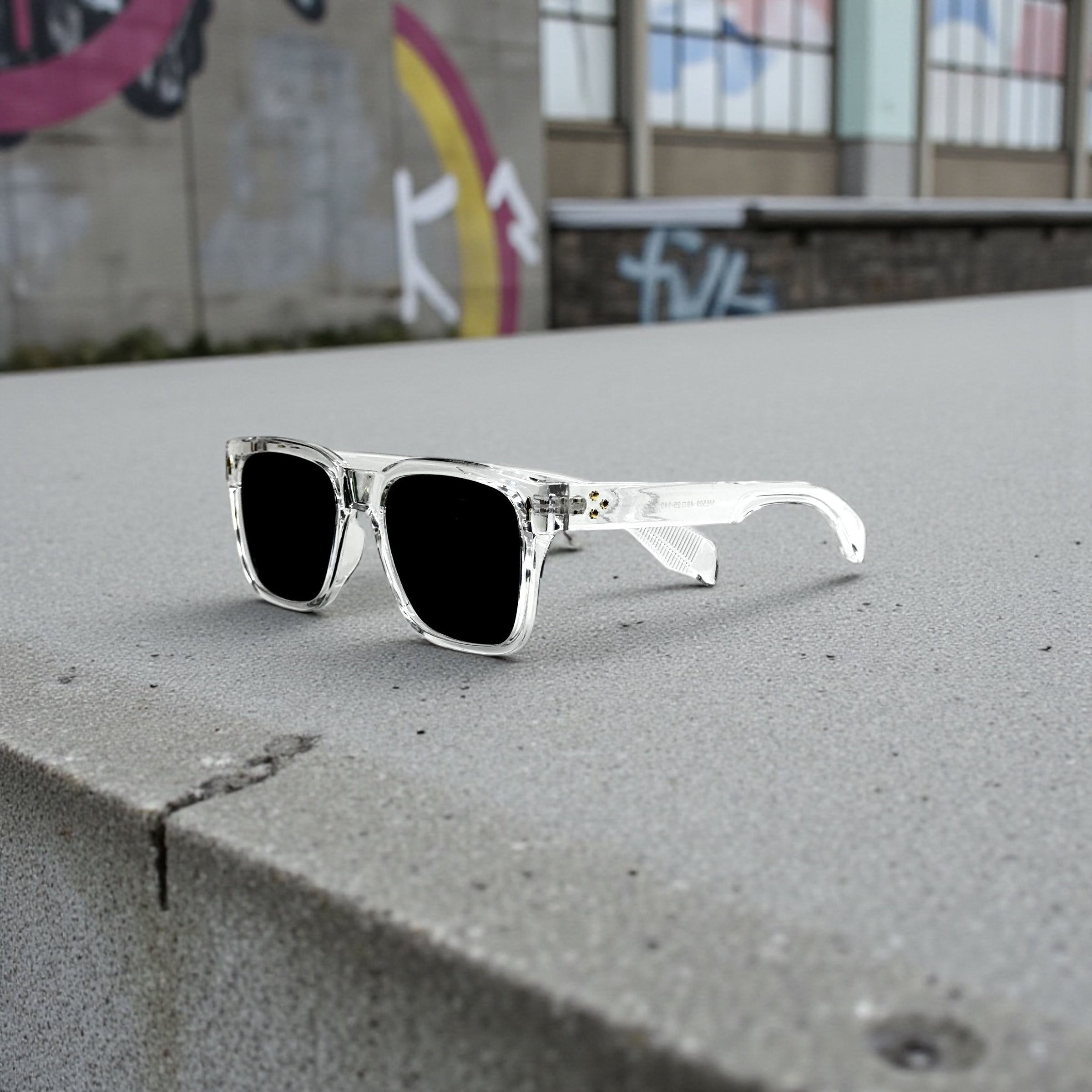 Une monture transparente au design contemporain, associée à des verres noirs profonds pour un look épuré et résolument moderne. Légère, confortable et pensée pour l’homme qui recherche un accessoire minimaliste, polyvalent et tendance. Un essentiel urbain qui élève instantanément chaque tenue — du casual au chic.
