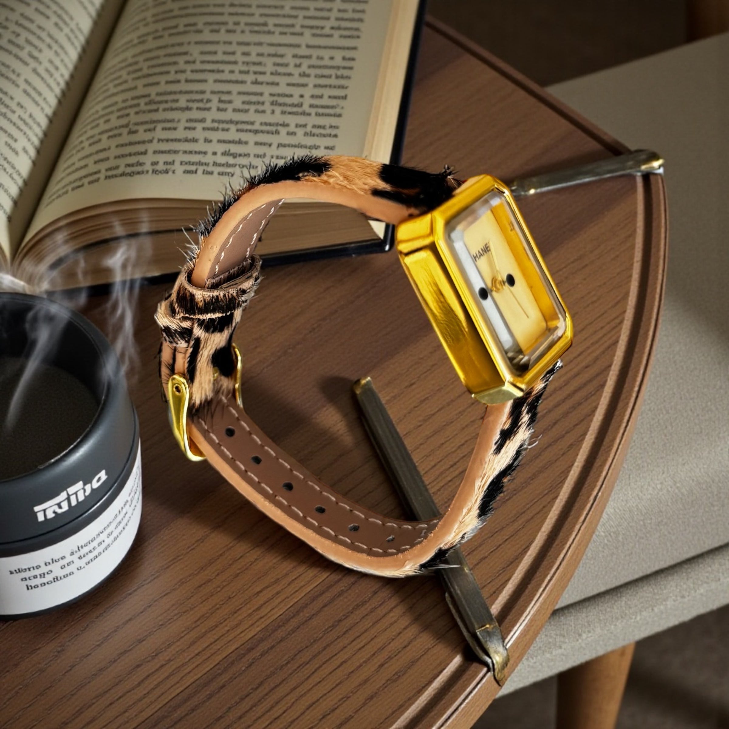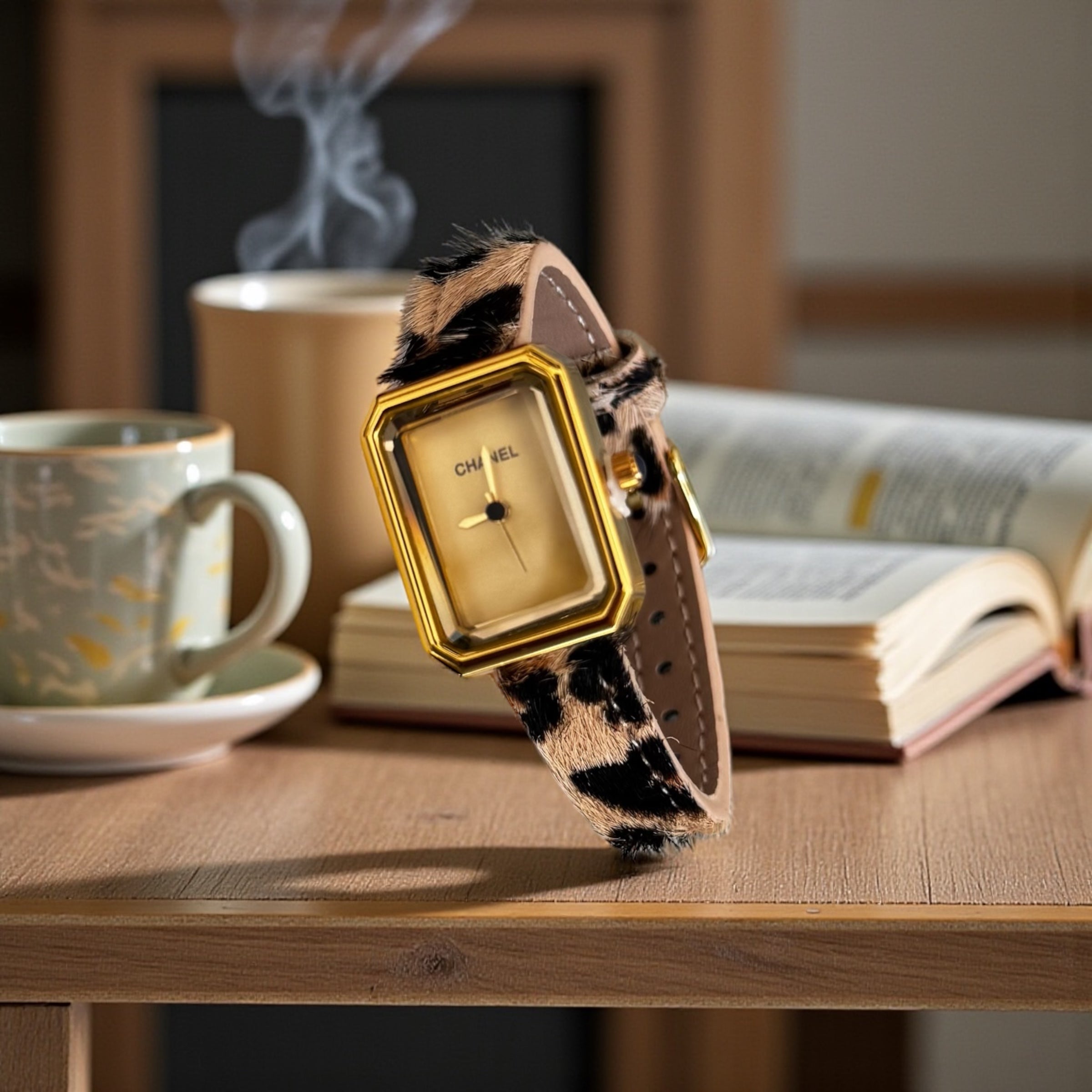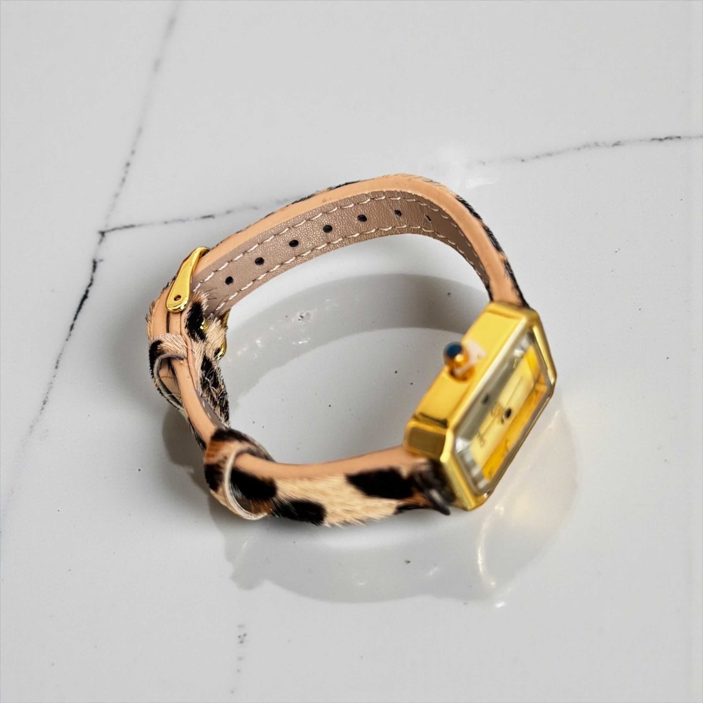 Cadran rectangulaire chic, bracelet effet léopard ultra-tendance : un accessoire qui sublime chaque tenue, du quotidien aux soirées.