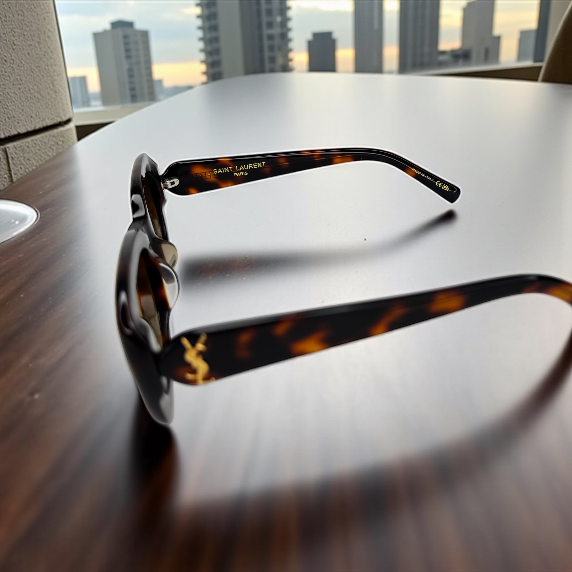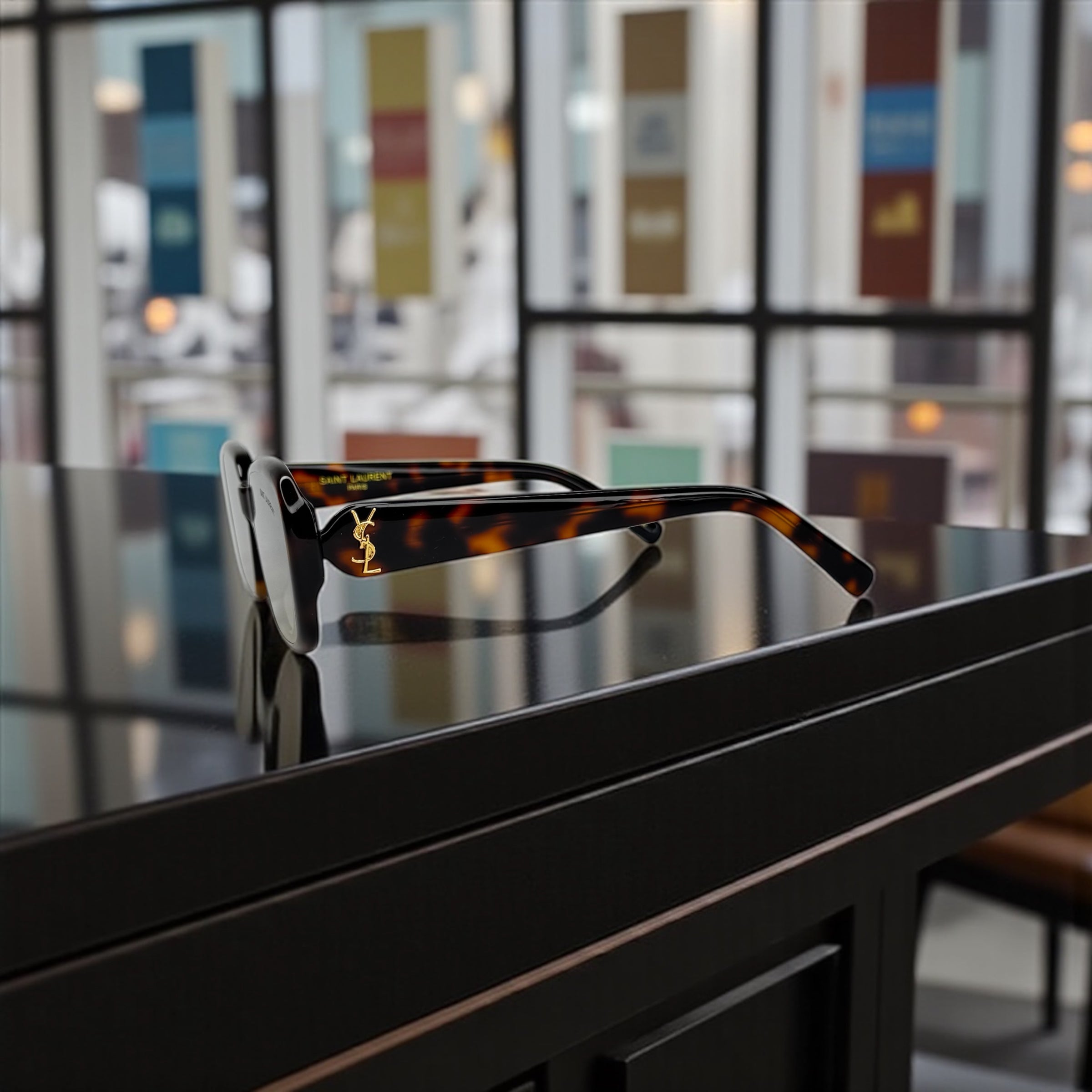 Lunettes de Soleil Femme – Saint Laurent Carrée Havana & Gold