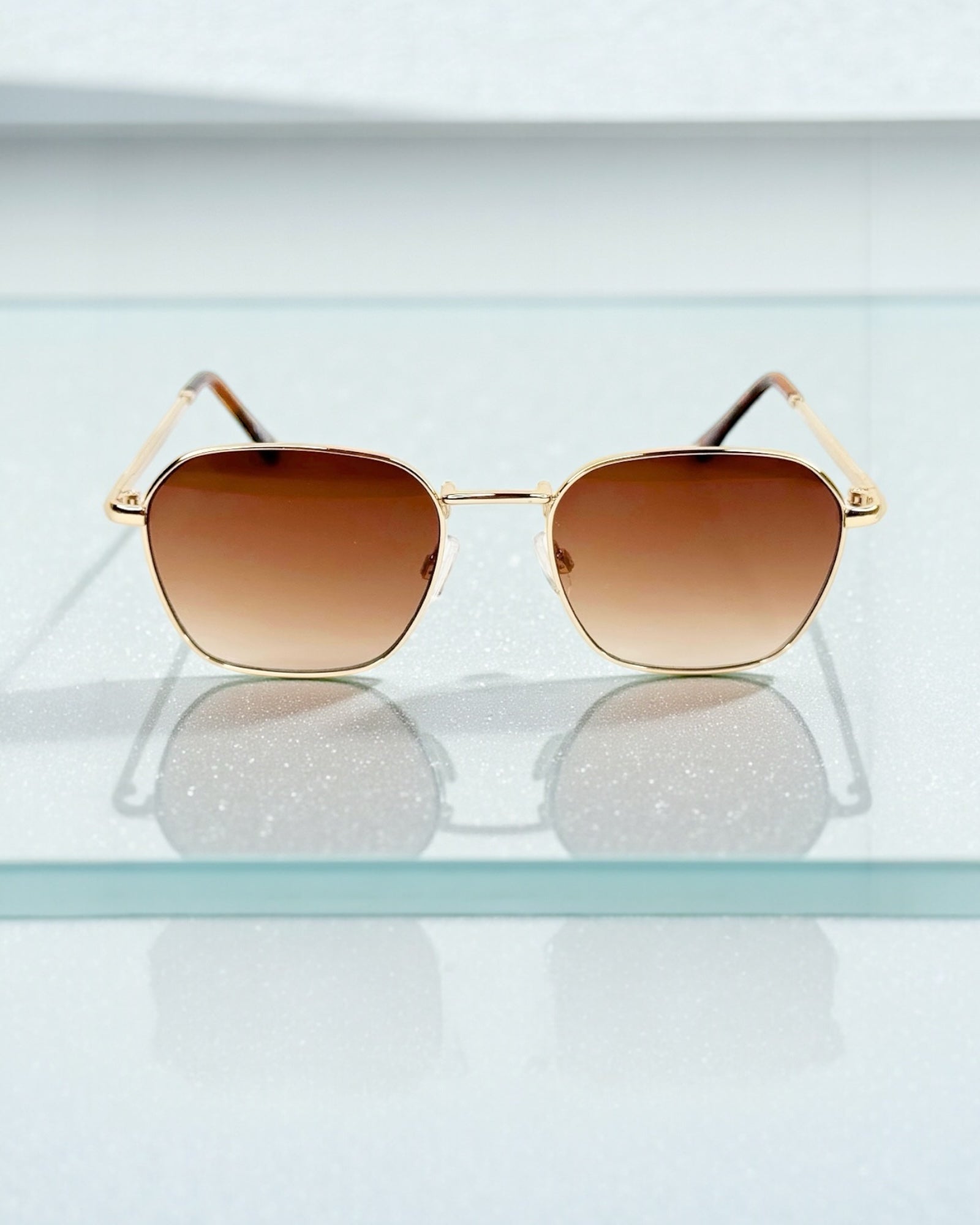 Adoptez une allure chic et raffinée avec ces lunettes de soleil homme à monture dorée et verres bruns dégradés.