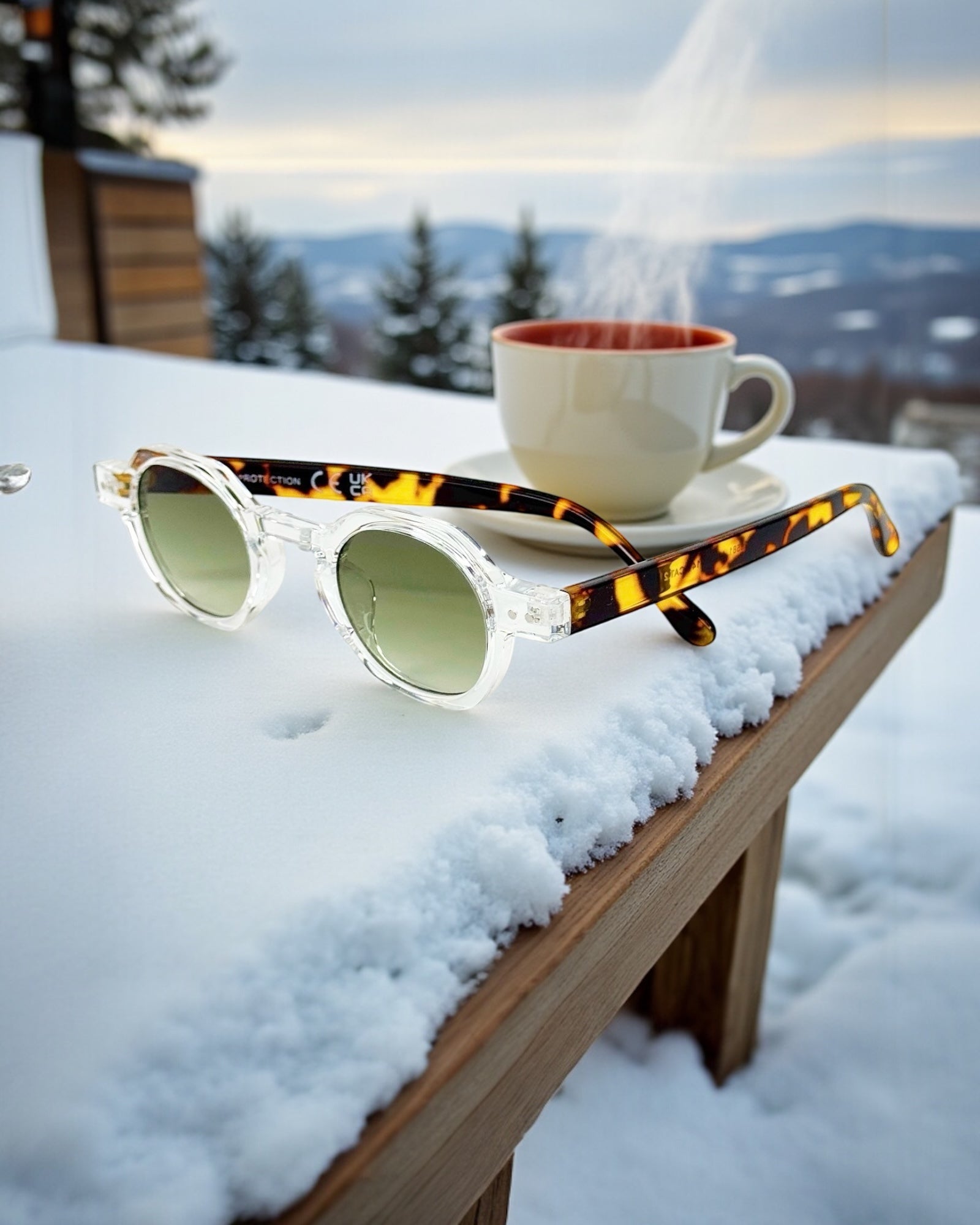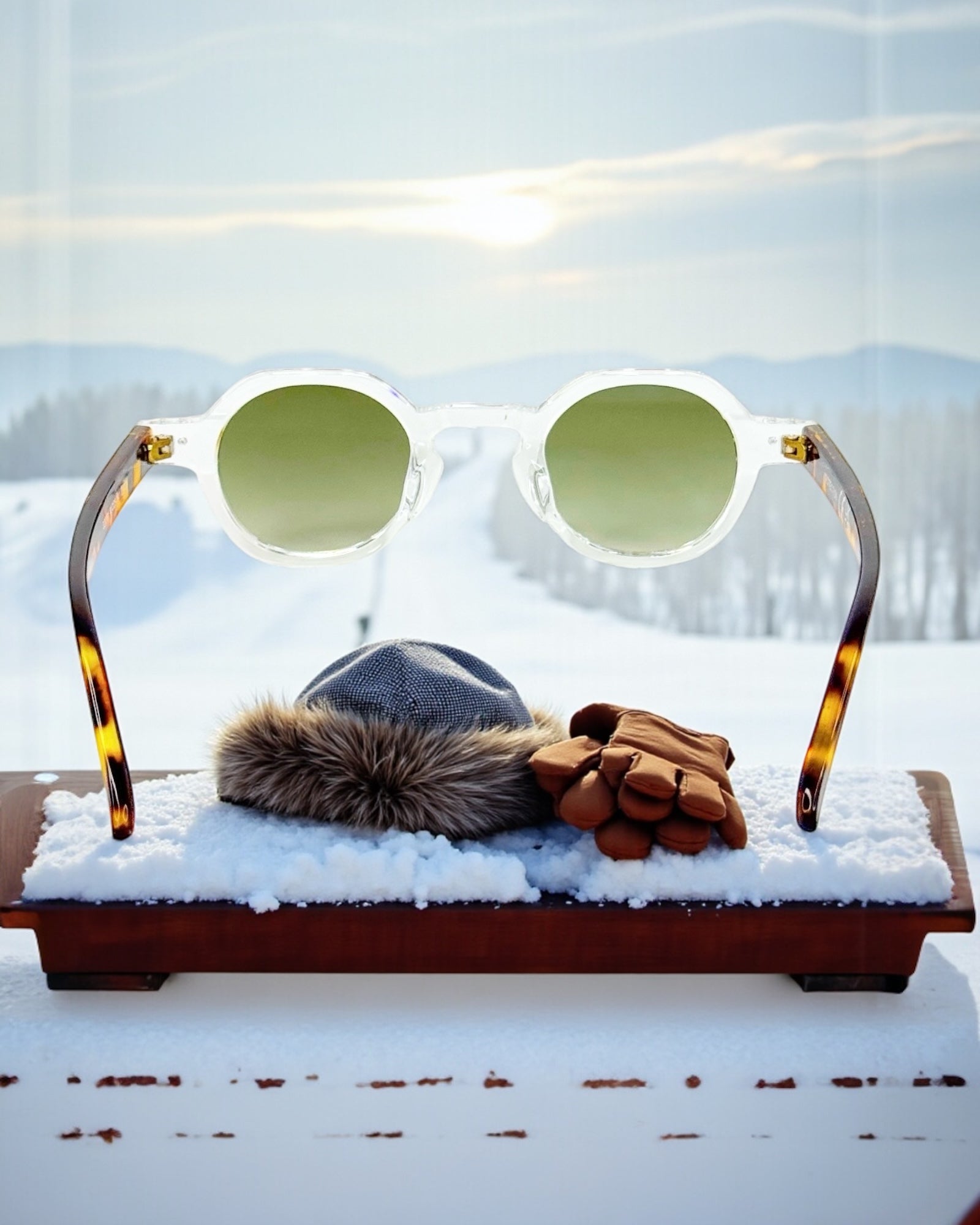 Leur design rond et leurs verres verts dégradés capturent la lumière hivernale tout en offrant une protection optimale.