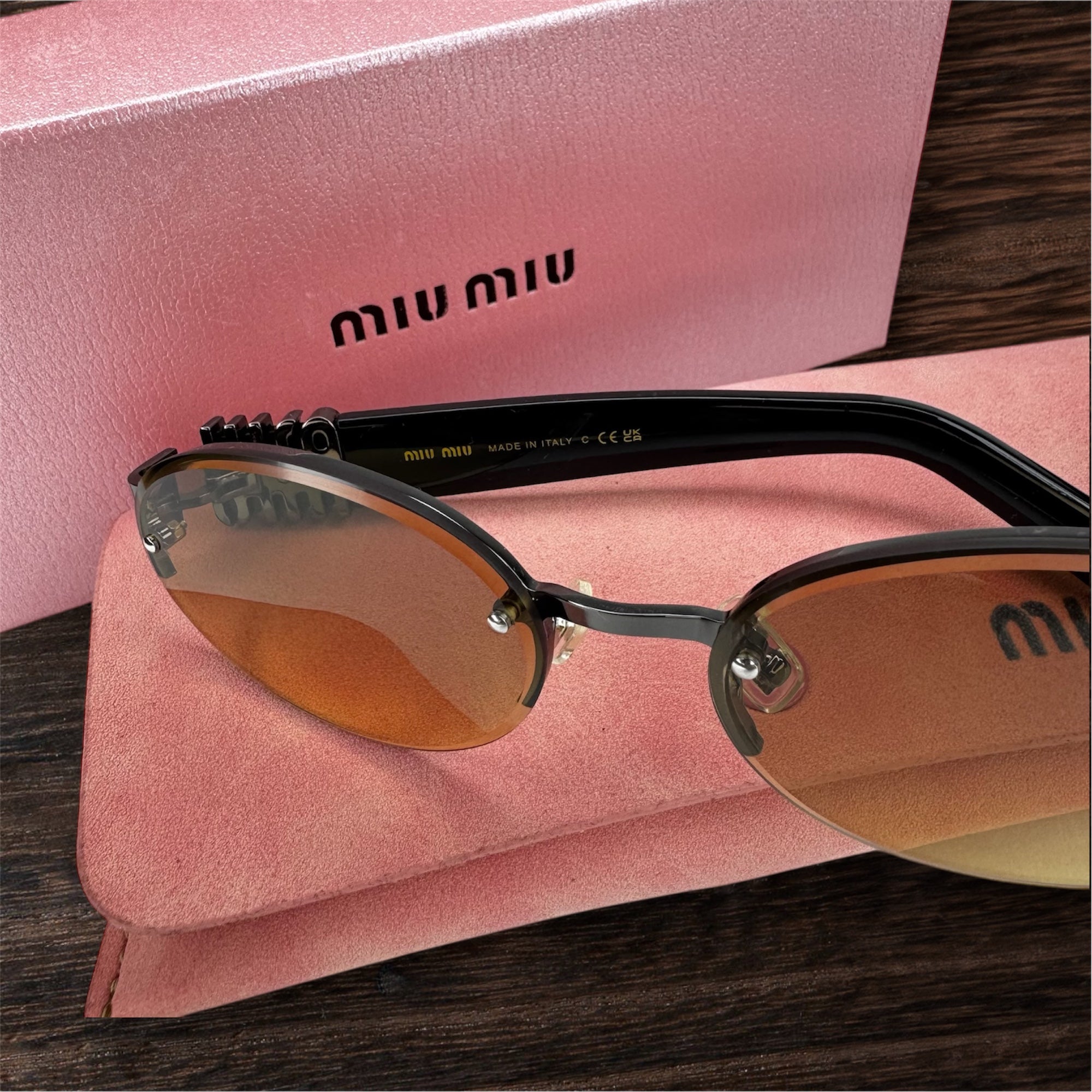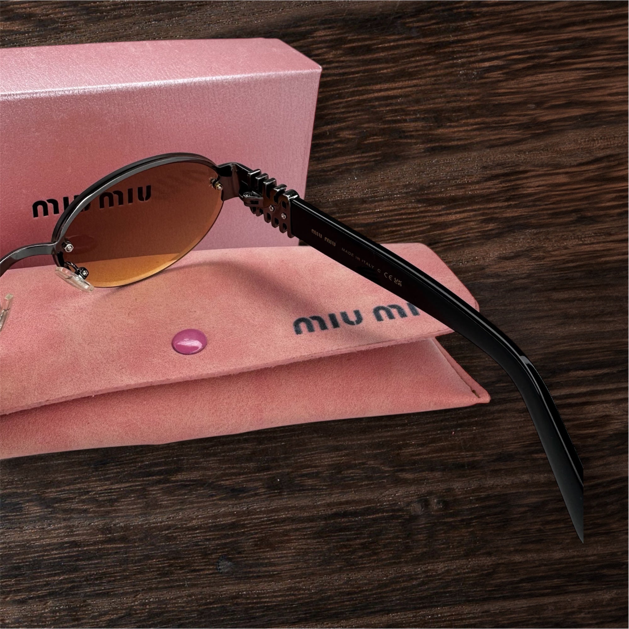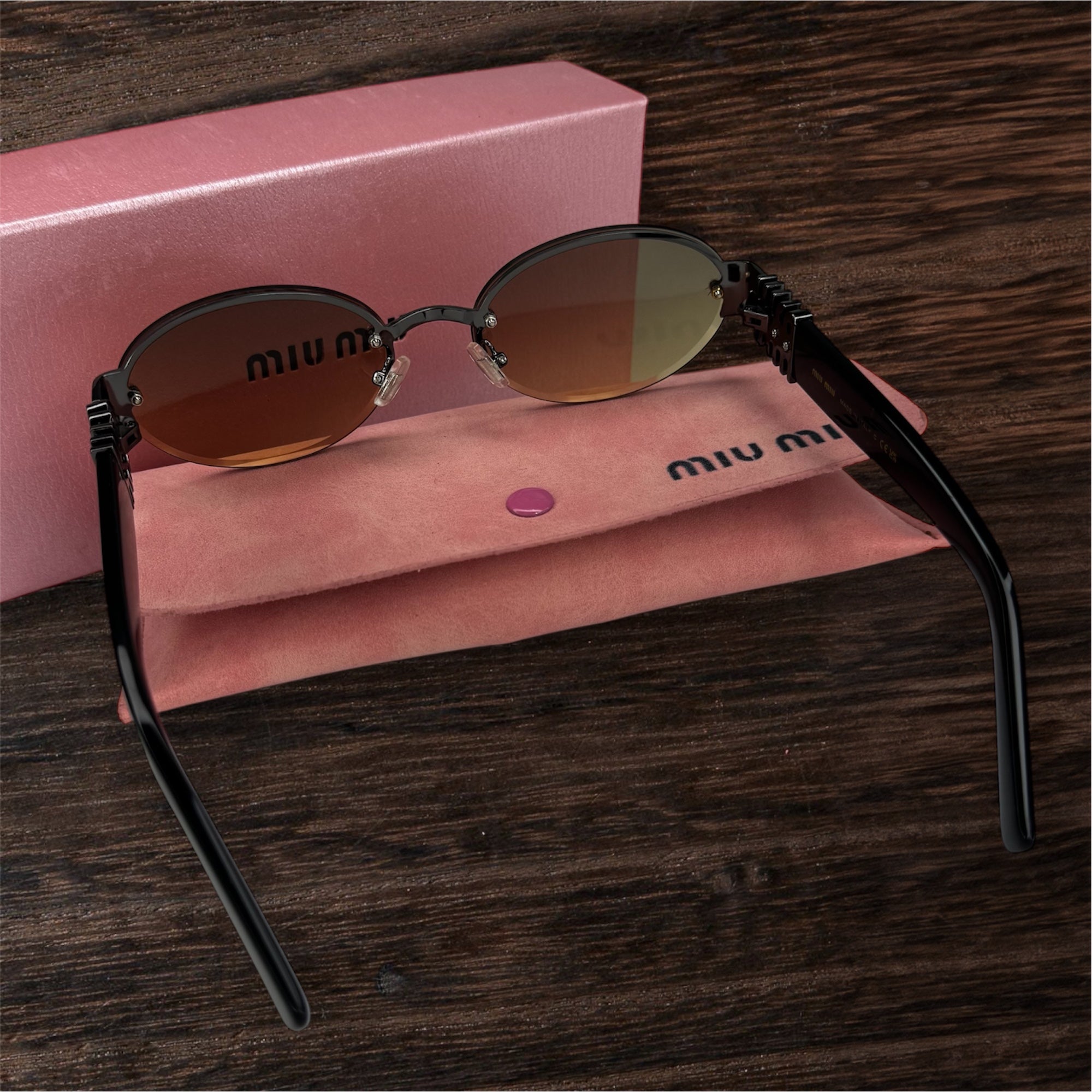 Branches : Noires avec logo Miu Miu gravé doré