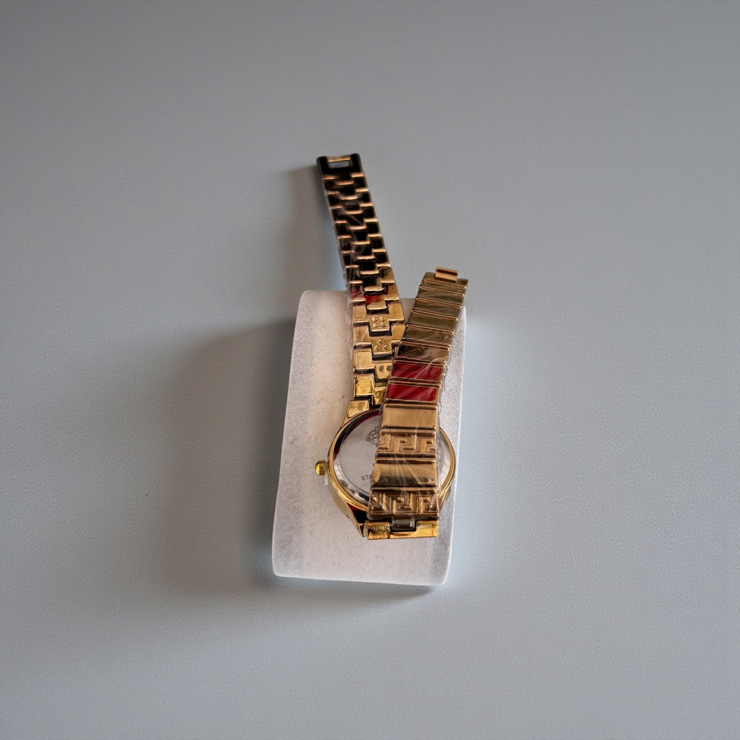 Montre femme dorée au cadran vert élégant. Design luxe et chic, idéale pour un style raffiné ou comme idée cadeau. Livraison rapide partout en Tunisie.