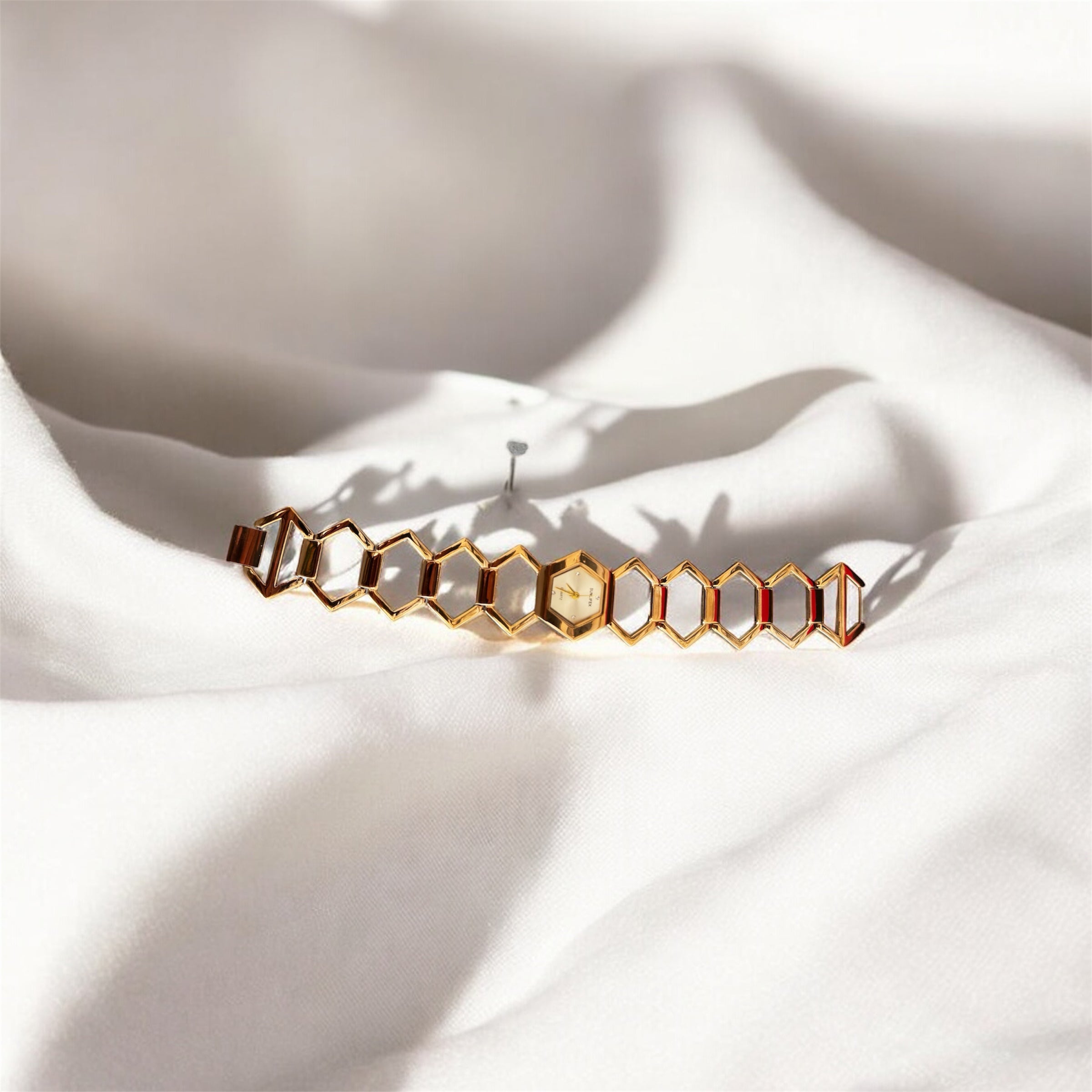 Montre femme dorée au design géométrique élégant, style bijou chic et raffiné. Une pièce tendance qui sublime vos looks et idéale comme idée cadeau. Livraison rapide en Tunisie.