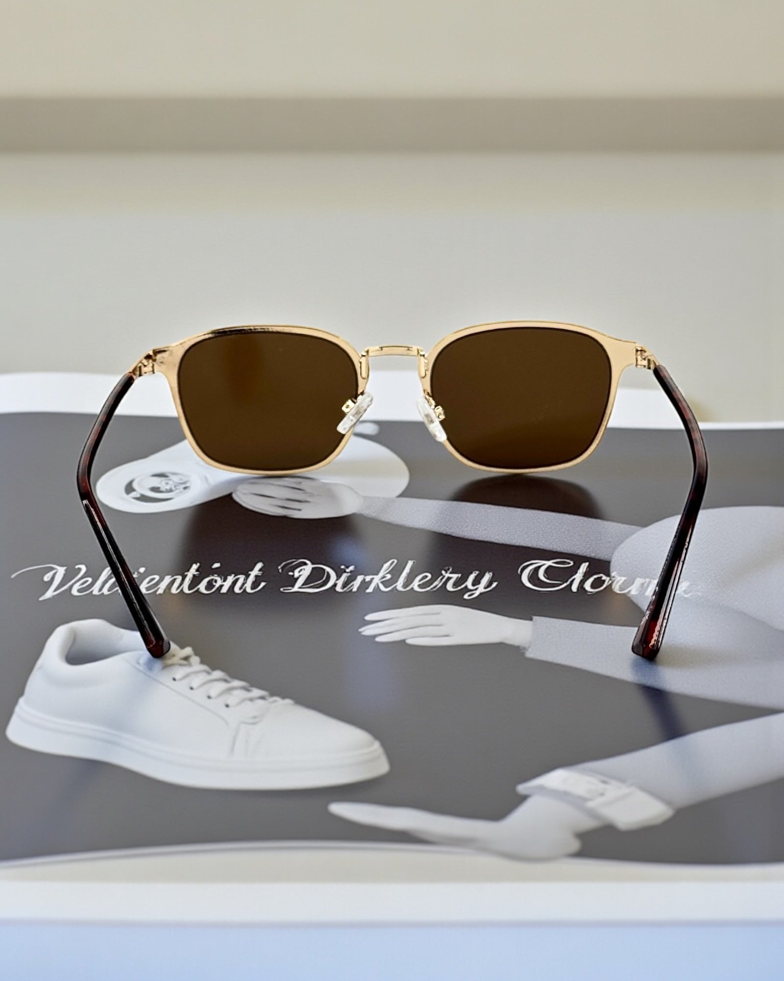 Lunettes de soleil homme avec monture dorée et verres verts foncés, inspirées du style rétro chic. Leur design intemporel allie élégance et caractère, parfait pour un look distingué au quotidien ou lors des occasions spéciales.