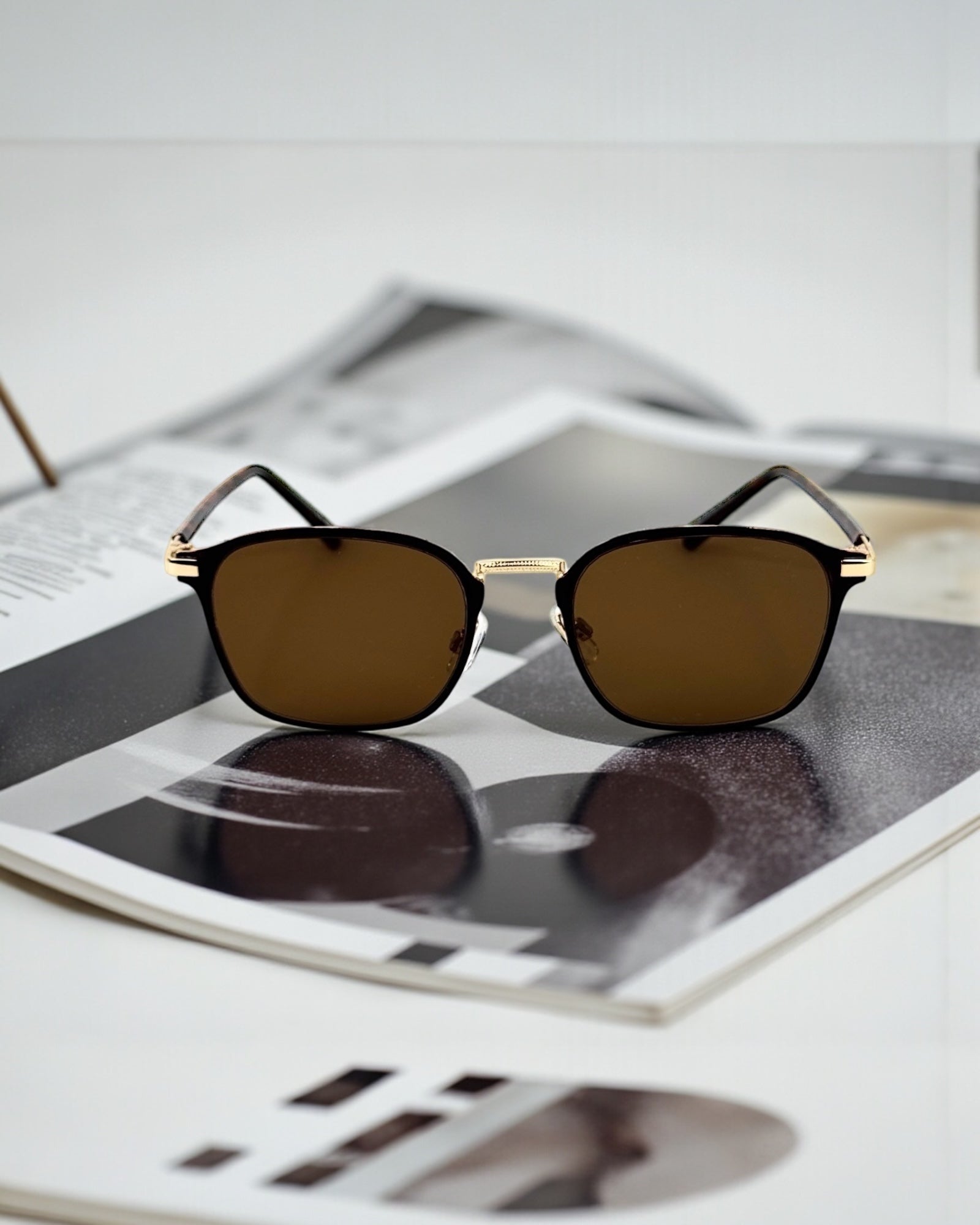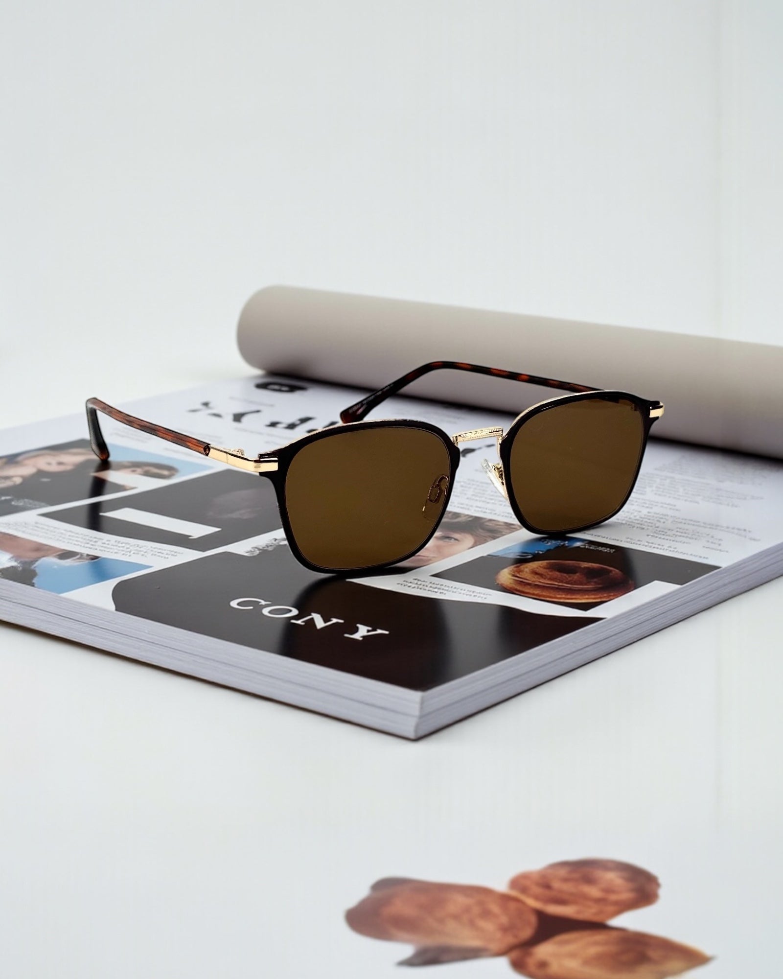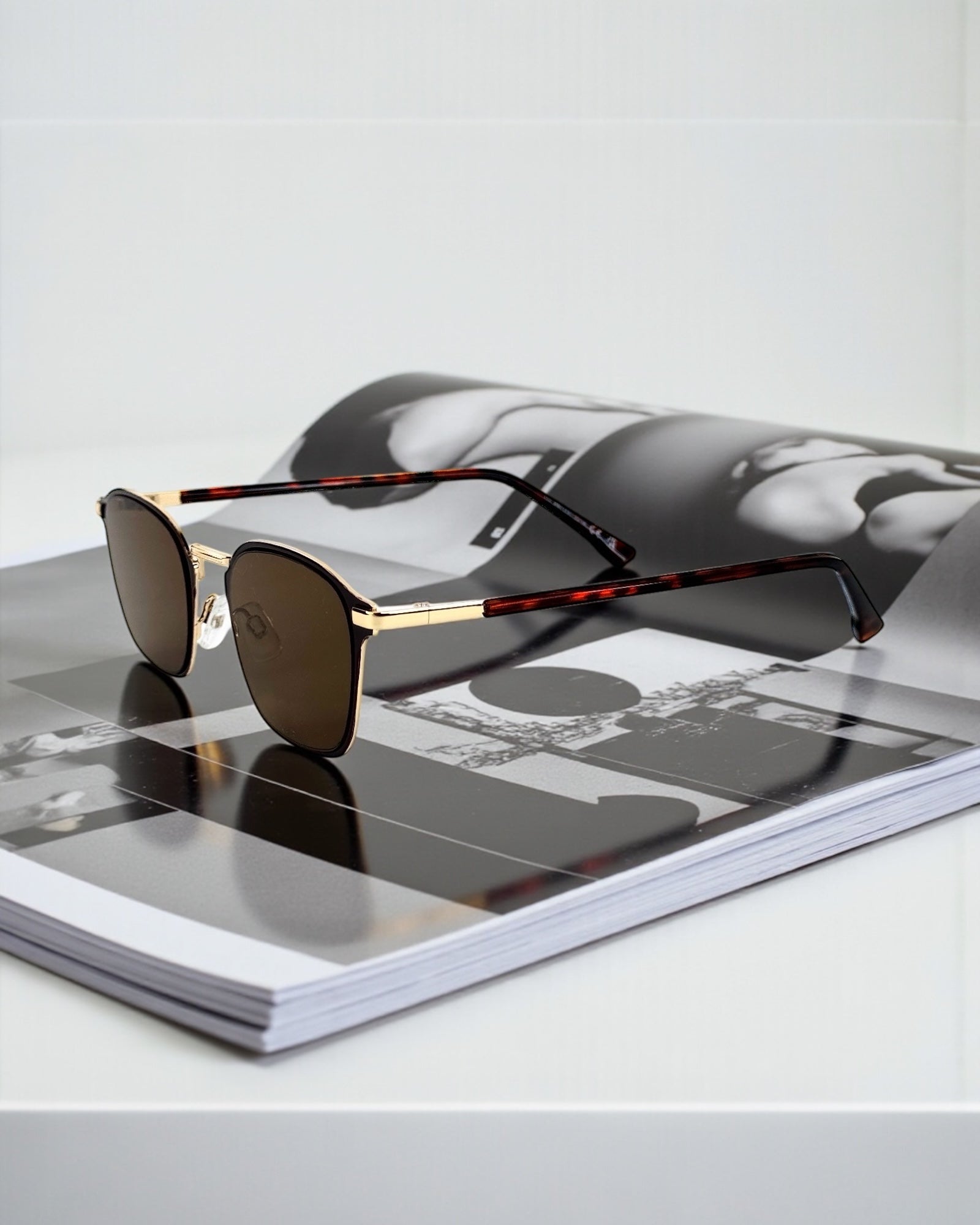 Monture écaille combinée à des détails dorés pour une touche de luxe subtile.