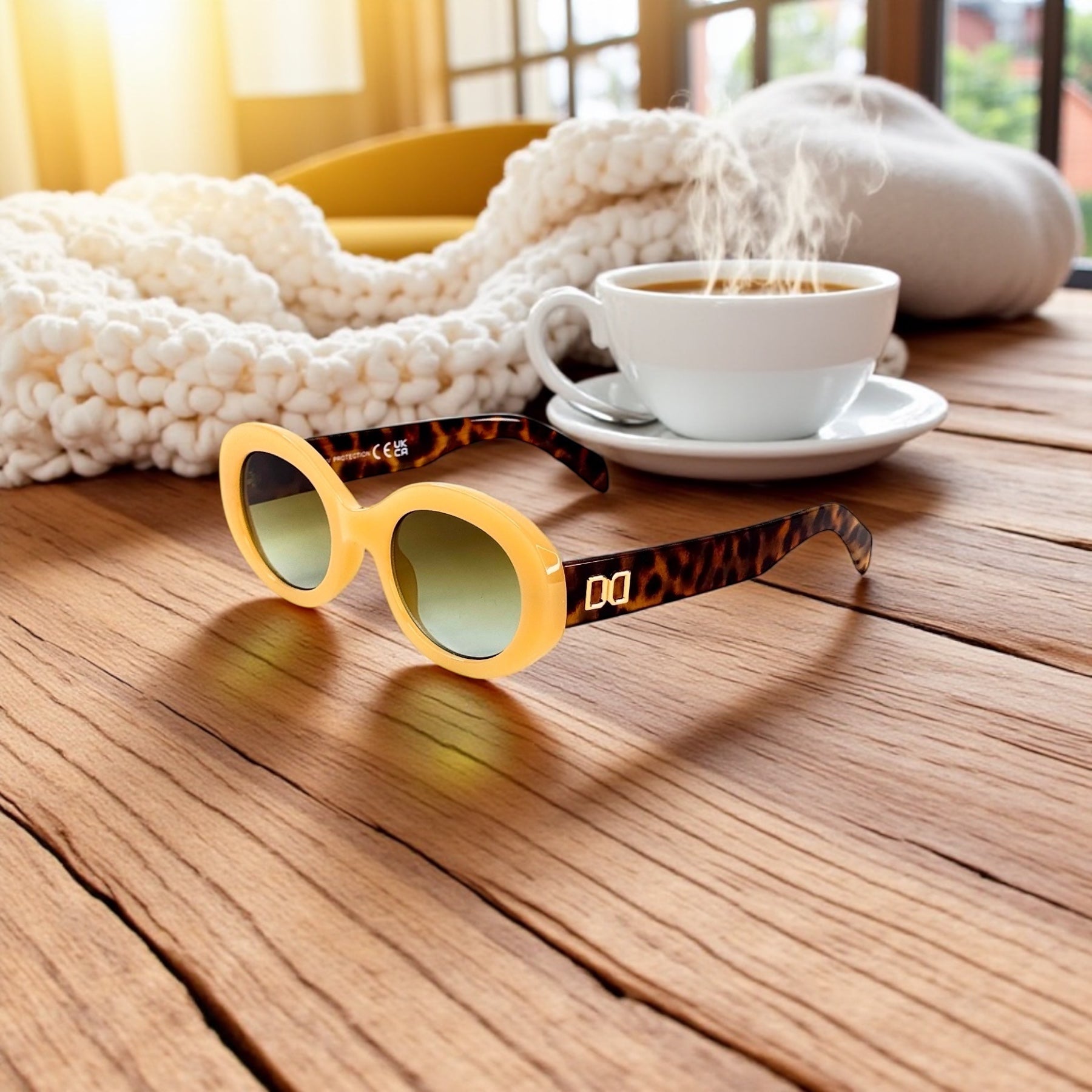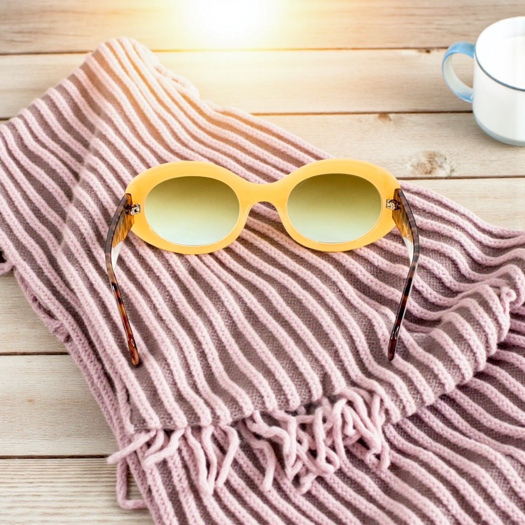 Monture jaune pastel lumineuse associée à des branches écaille élégantes pour un look original et chaleureux.