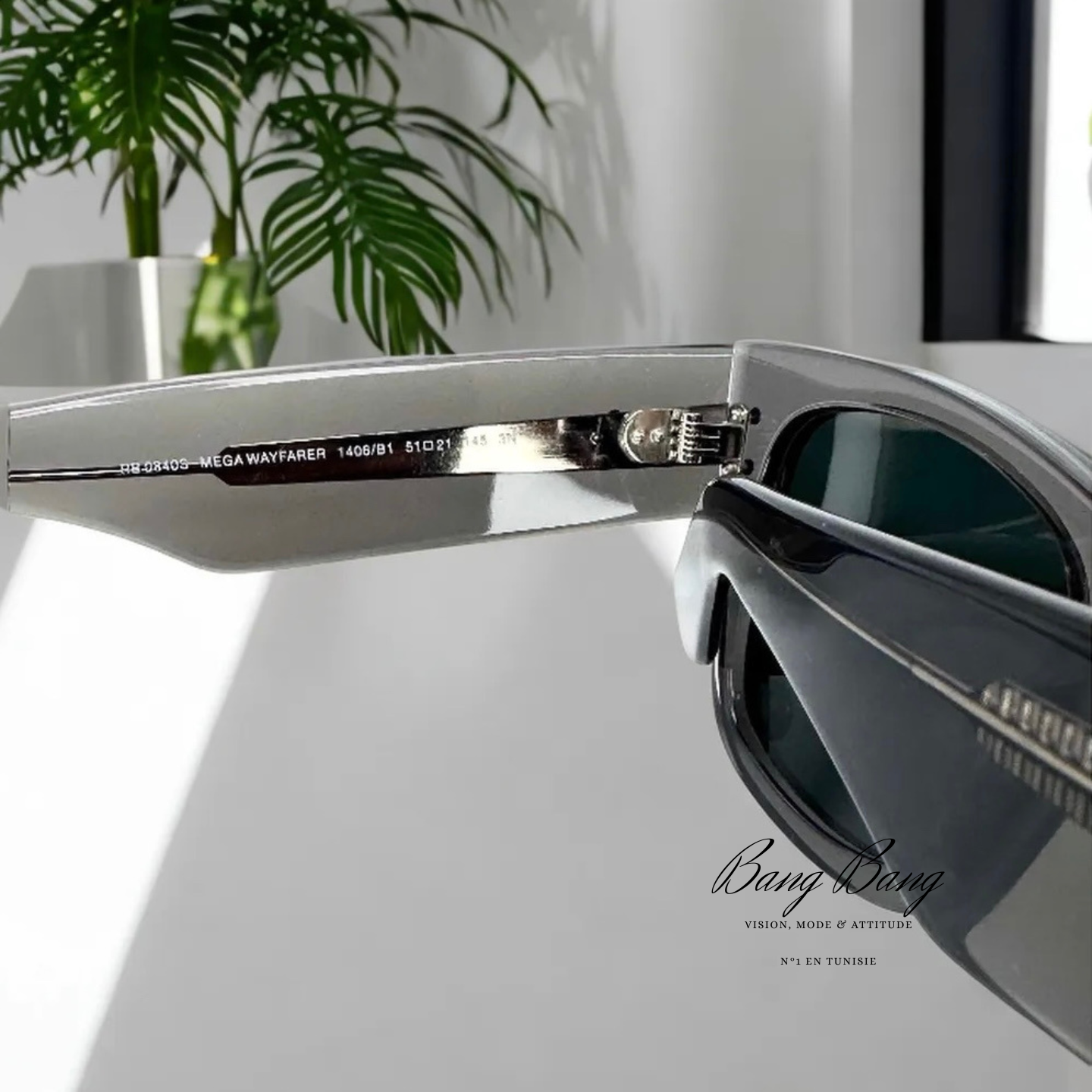 Forme : Wayfarer surdimensionné (oversize), plus massif et audacieux que le modèle classique