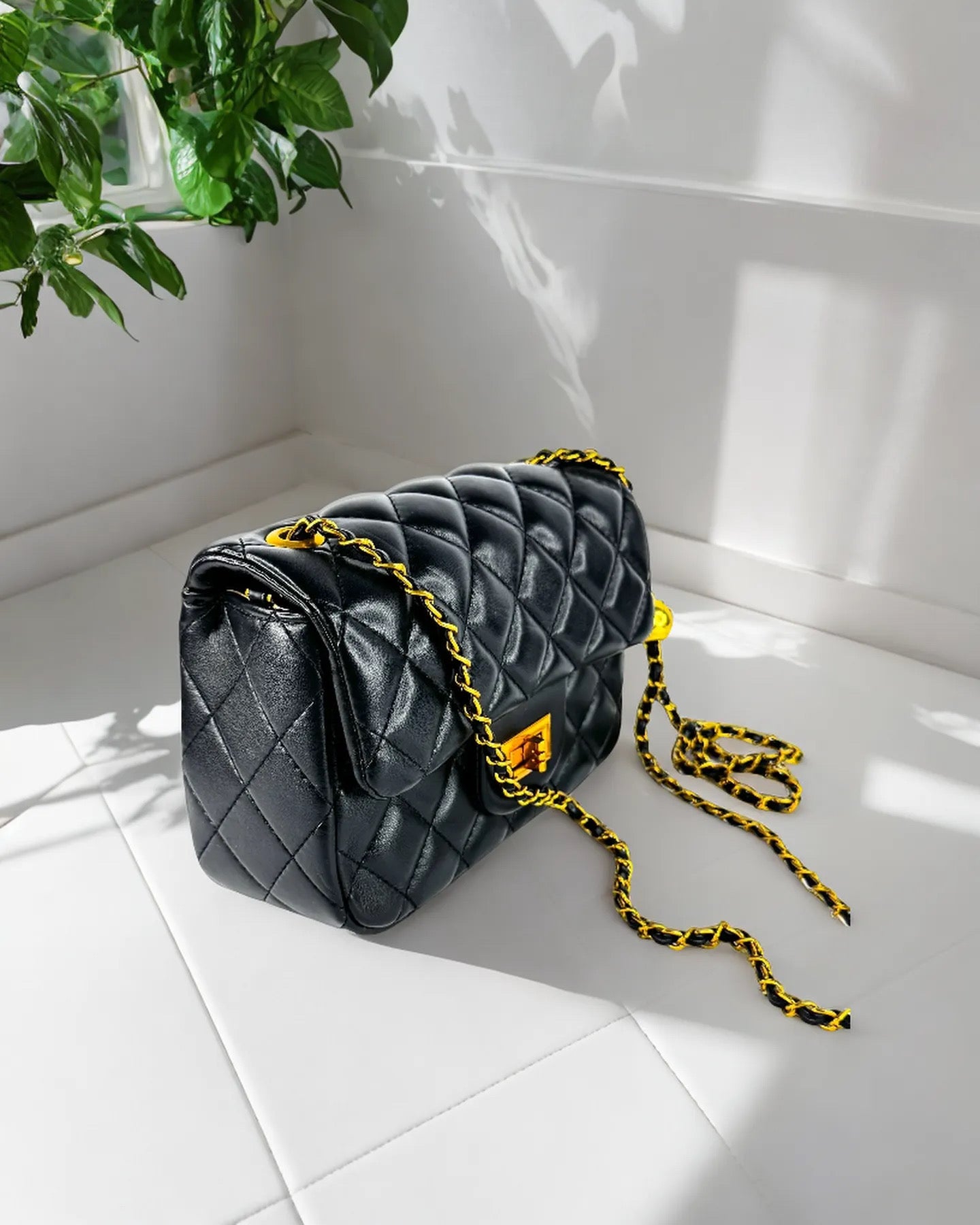 Sac matelassé noir à chaîne dorée – Style Parisien