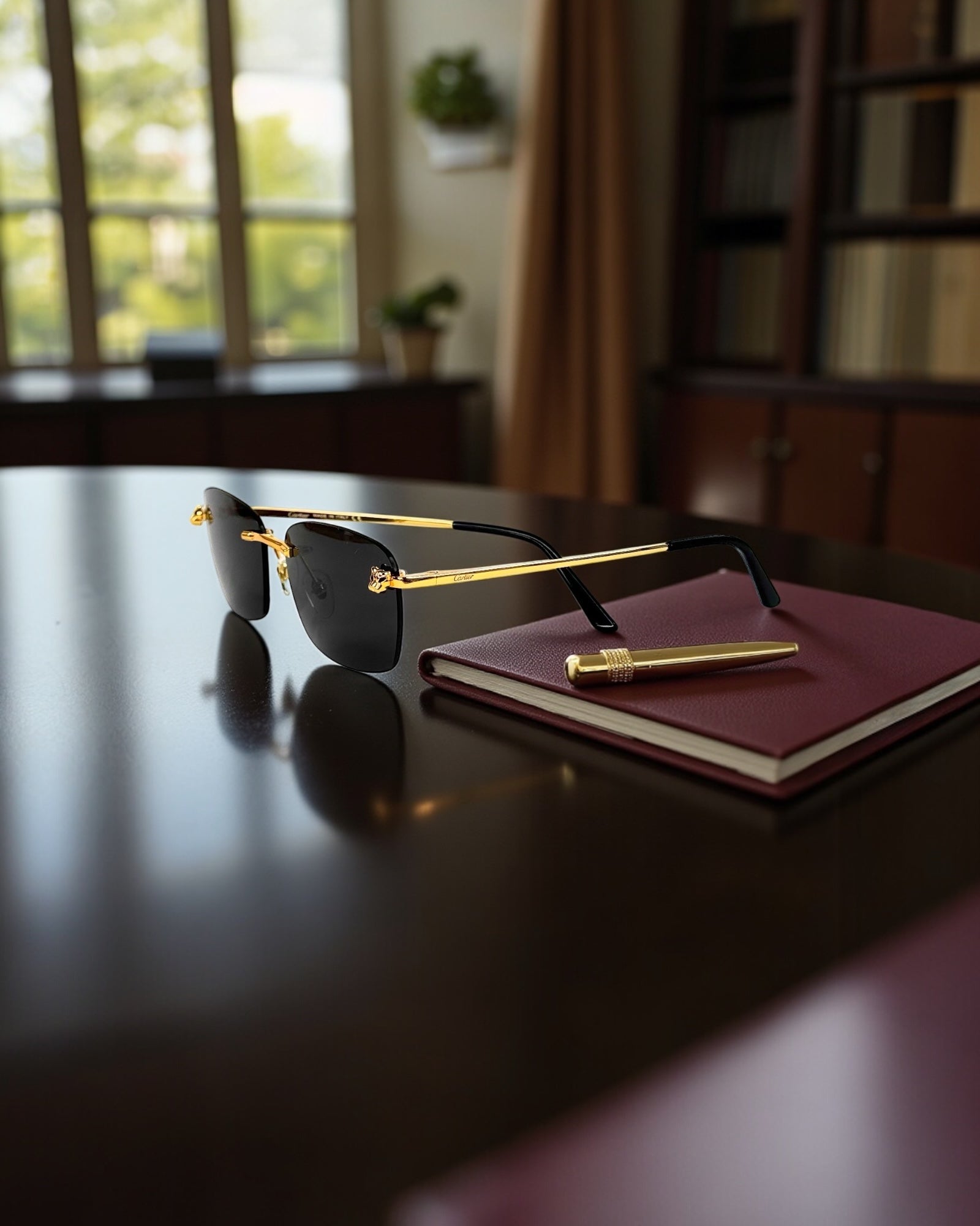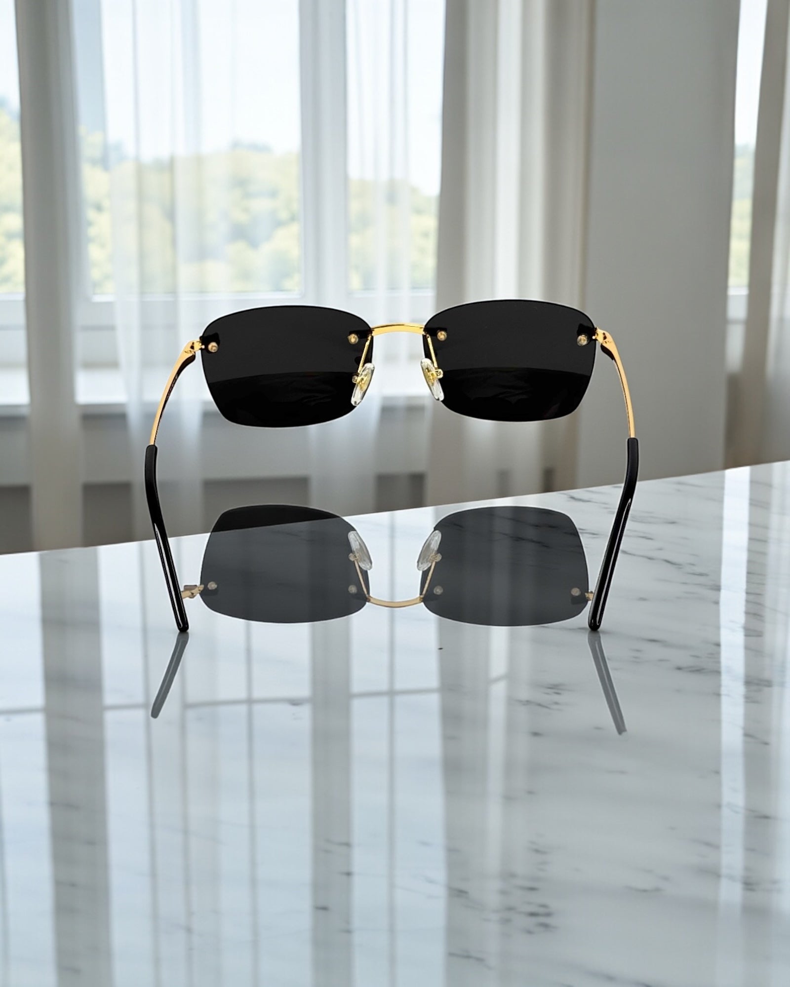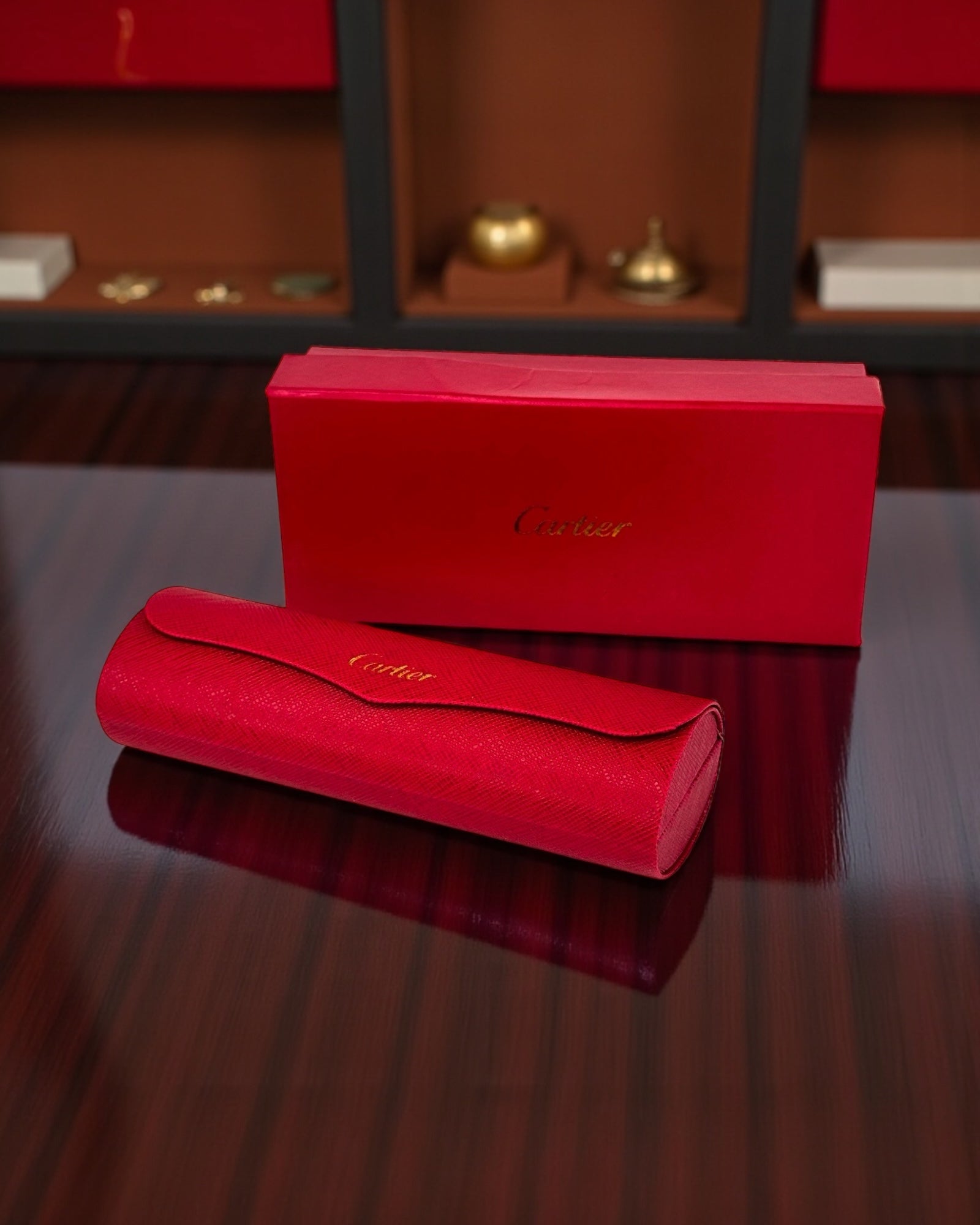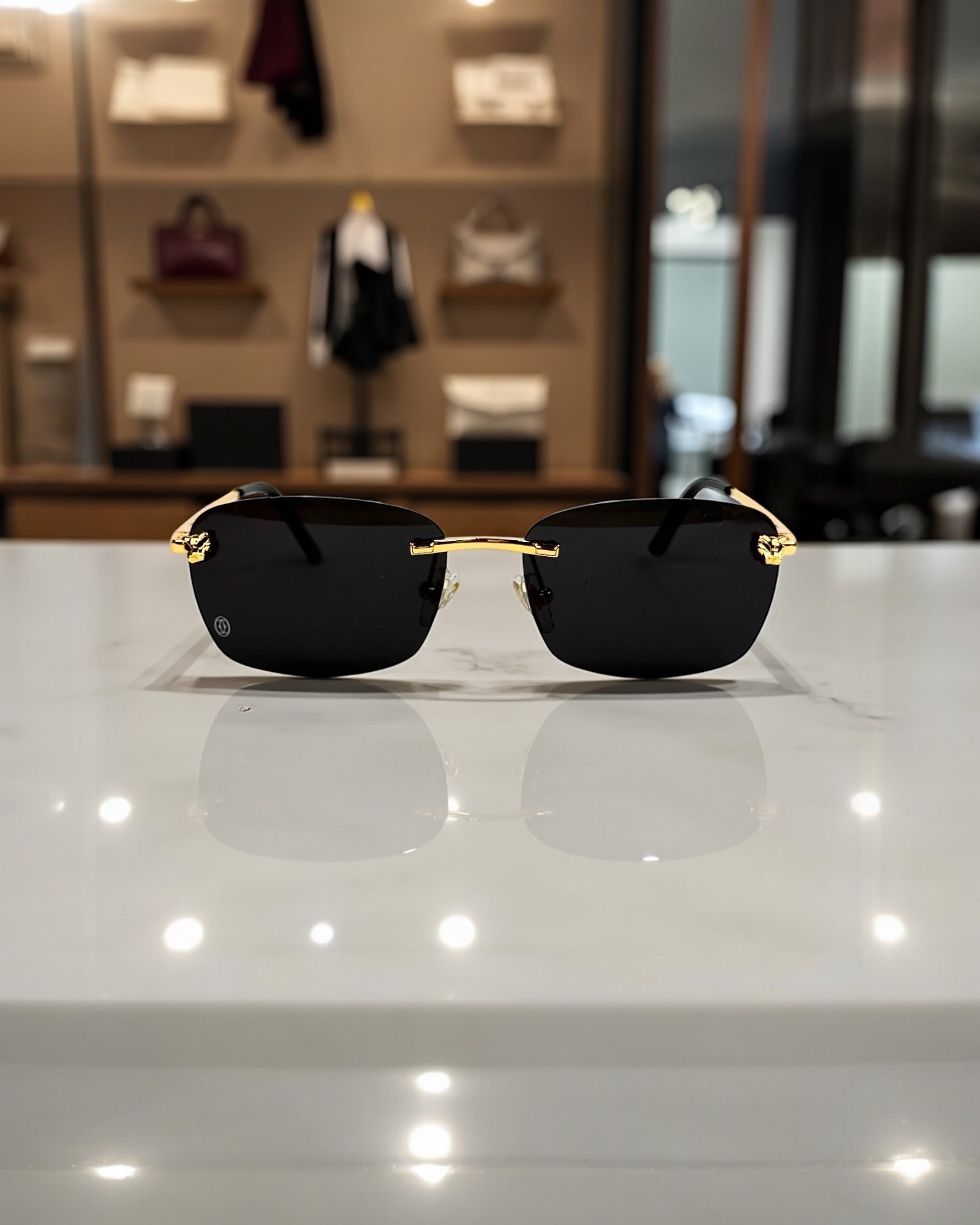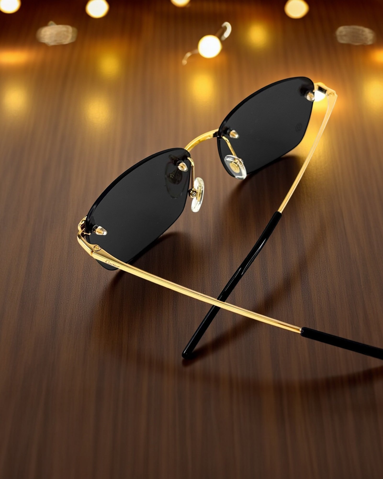 Faites la différence avec un modèle signé Cartier : monture dorée, verres noirs profonds et détails d’exception.