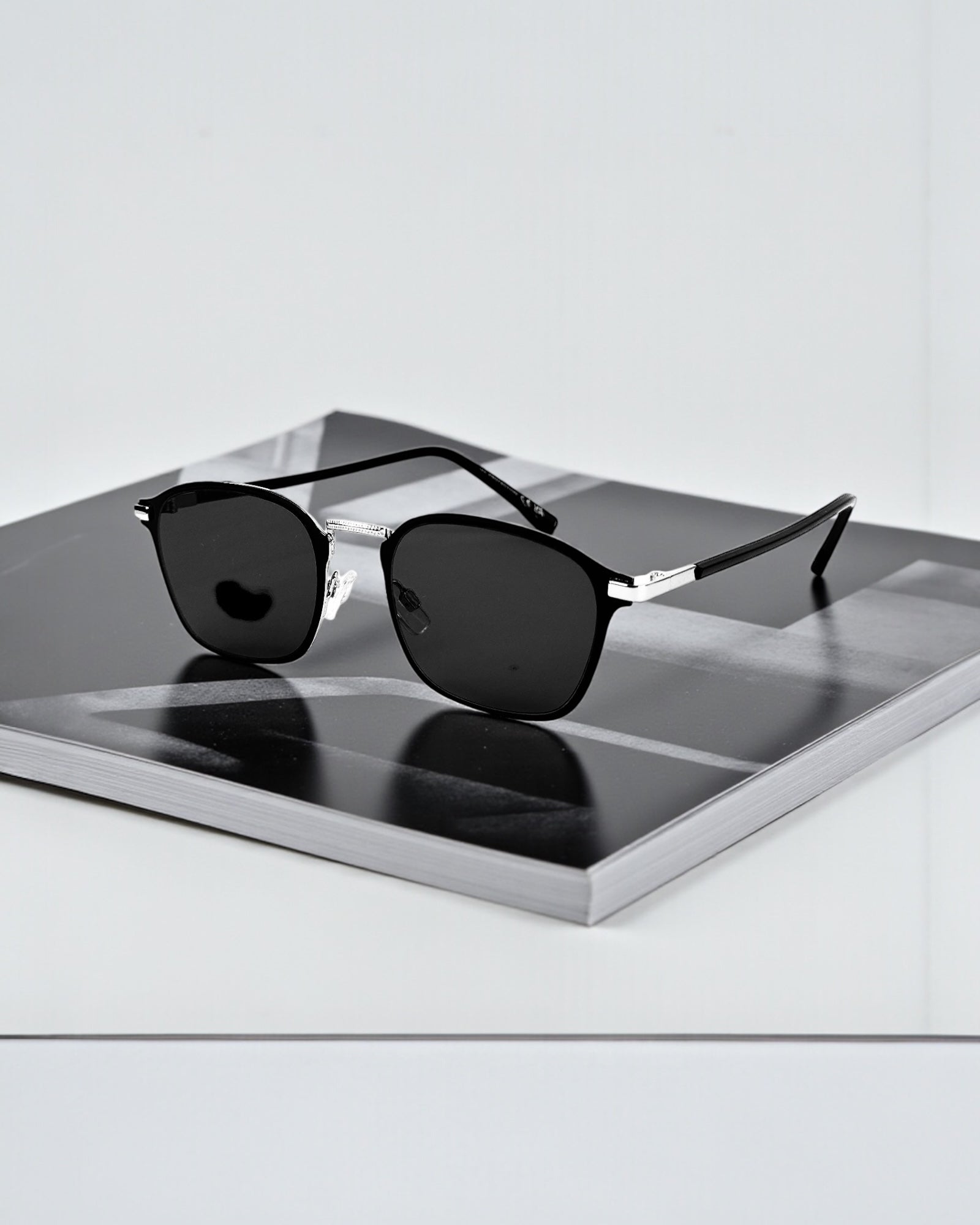 Monture noire brillante sublimée par des détails argentés élégants.